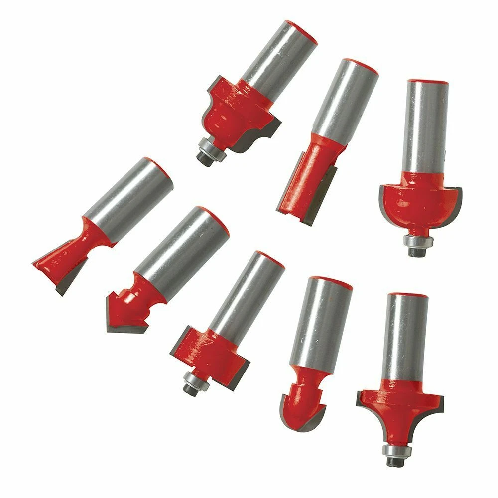 – Includes: Straight bits 5, 6, 8, 10, 12, 14, 16, 18 and 20mm; Dovetail: 12.7mm; V Groove: 9.5mm, 12.7mm, R6.3mm; Cove box: R3.2mm, R6.3mm; Classical: 12.7mm; Flush trim: 12.7mm; Chamfer: 16mm, 32mm; Roman ogee R4mm; Rebater 28.6mm; Cove bit: R9.5mm; Rounding Over: R3.2mm, R6.3mm, R7.9mm, R9.5mm; Beading cutter: R3.2mm, R6.3mm, R7.9mm, R9.5mm.