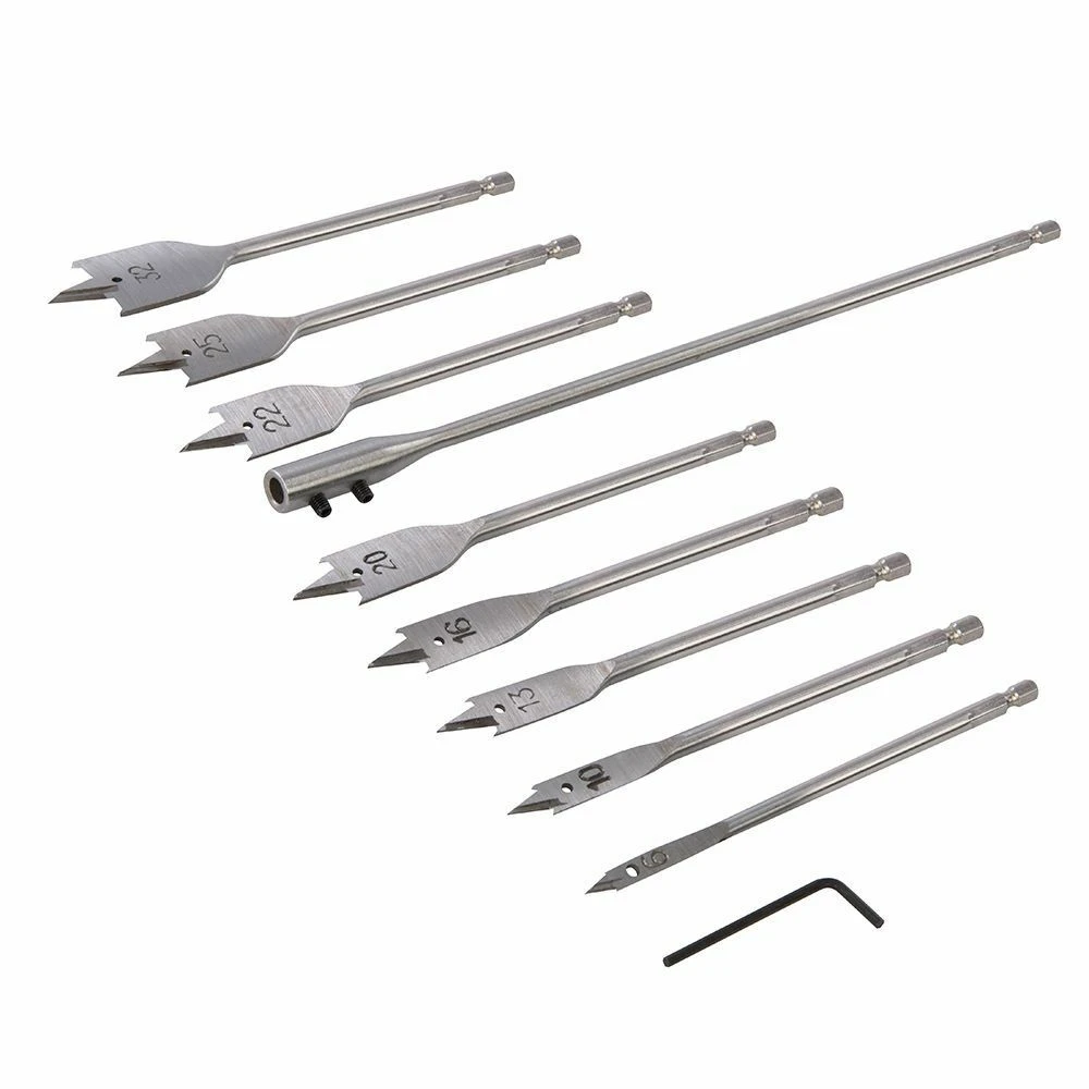 – Sizes: 6, 10, 13, 16, 20, 22, 25 and 32mm bits and 300mm extension bar and hex key