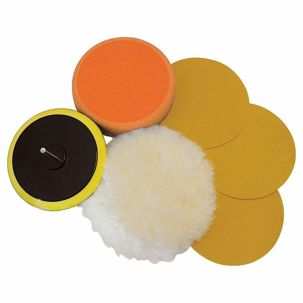 – Includes plastic backing pad with 6mm dia arbor, general purpose polishing sponge, lambswool bonnet and 3 sanding discs (180, 240 and 400 grit)