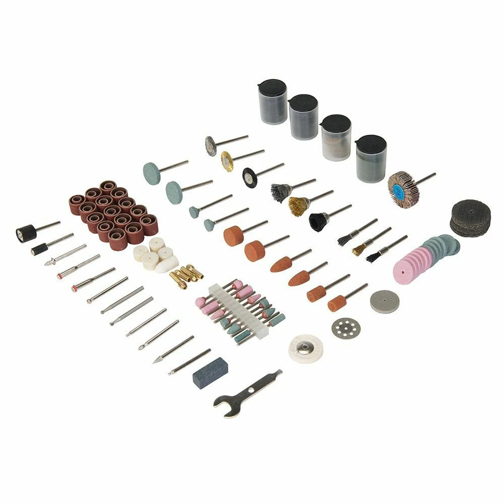 – Includes cutting and grinding wheels and stones, burrs, sanding drums, felt polishing felt tips and compound