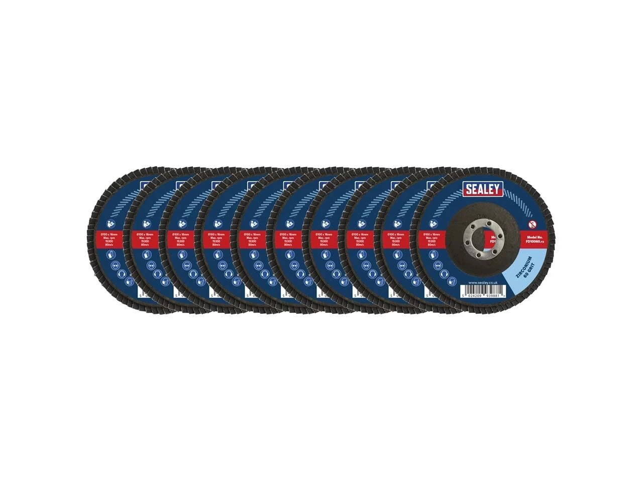 The Sealey Zirconium flap discs for descaling, derusting, weld preparation, weld cleaning and general surface preparation. This pack contains four different levels of abrasion, for assorted applications and finishes.